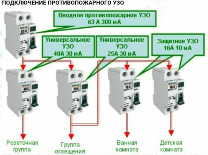 Различают 3 типа УЗО, реагирующих на разные виды утечек: