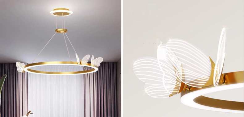 Заместо бусин люстру можно украсить бабочками — вырезанными из картона. Чем больше фигур вы используете, тем лучше. Но есть и другой вариант люстры с бабочками — она, кроме всего остального, будет отбрасывать на стенки необыкновенные тени.