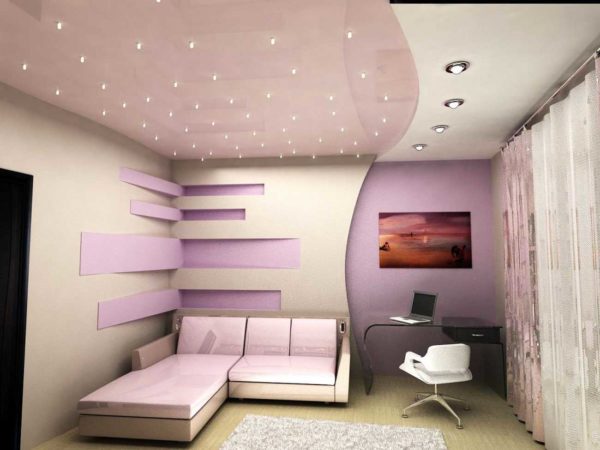 - Конкретно на поверхности потолка располагают осветительные приборы, если высота потолков – 3 метра и меньше. Свес обязан иметь длину менее 0,5 метров.