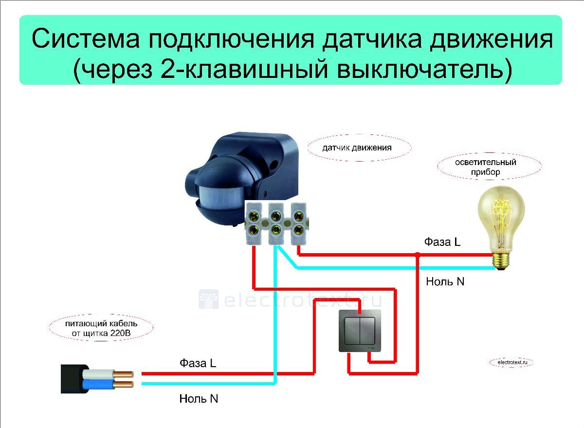 Принцип и схемы подключения датчика движения для освещения и сигнализации