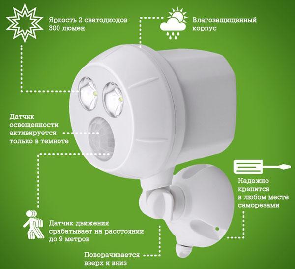 - Сейчас не надо в темноте «на ощупь» находить выключатель, замочную скважину либо кнопку лифта. Как вы попадаете в зону деяния устройства, автоматом зажигается свет.